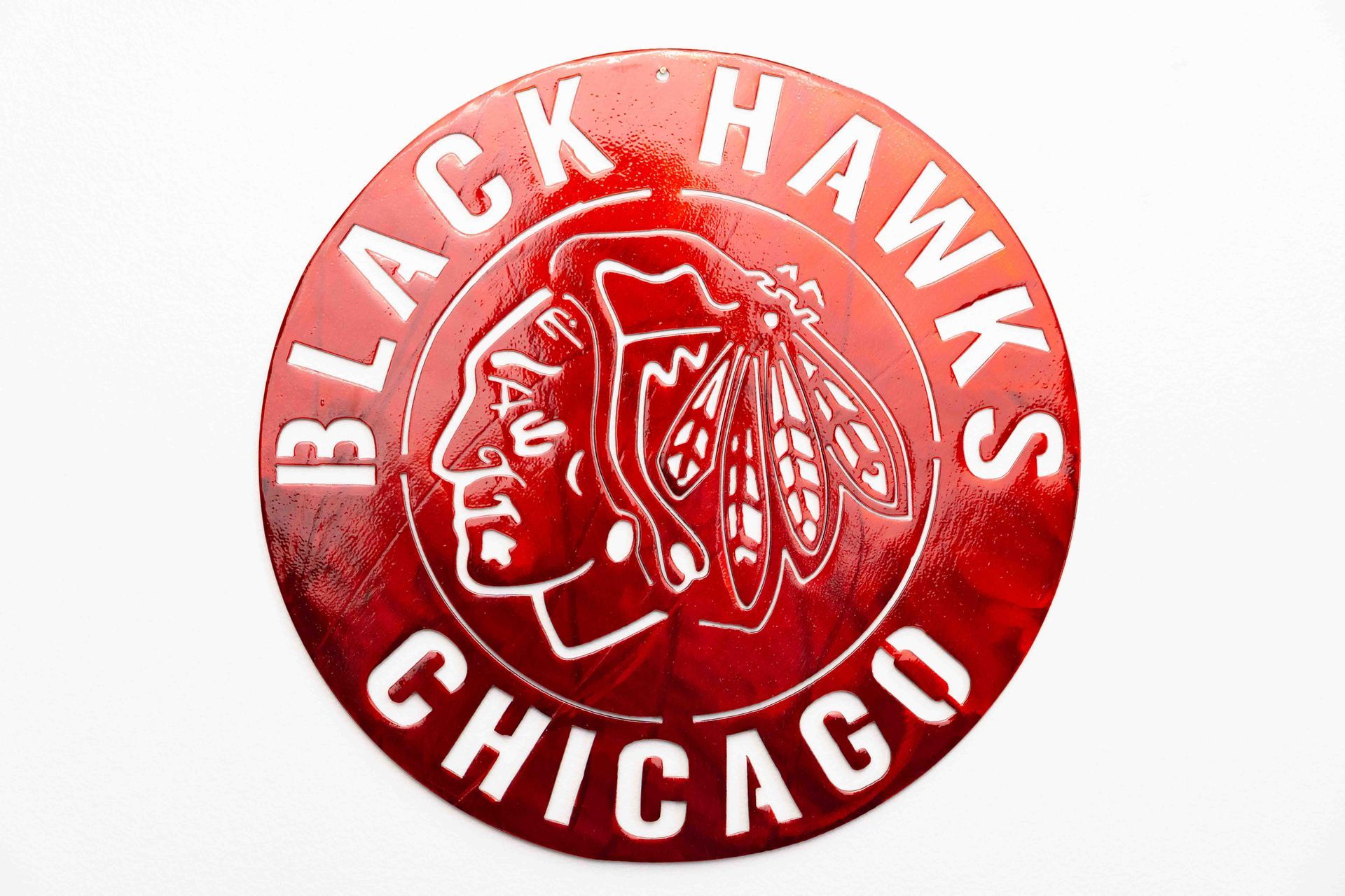 A bold hockey-inspired design. This piece captures the deep roots and tradition of Chicago hockey while adding a striking visual that stands out in any space. Perfect for garages, shops, game rooms, or any dedicated hockey fan’s setup.